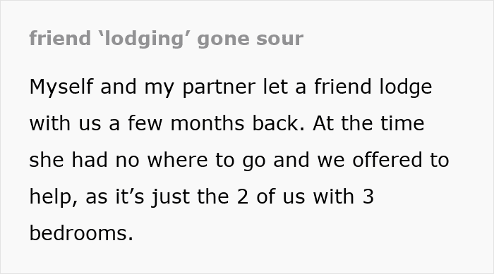 A woman turned to the internet for advice on what to do with a friend she let crash in her spare room and who now refuses to follow any rules or leave. We reached out to the woman who made the post via private message and will update the article when she gets back to us.