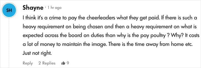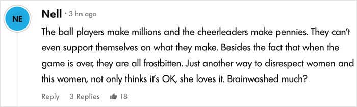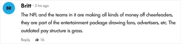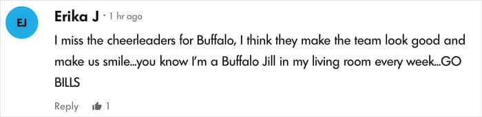 “You don’t go into it to make money,” she said. “That’s not why you’re a cheerleader for the NFL… It’s a dream come true, right? You can’t expect to become rich off of doing it. You’re not a Buffalo Bill.”