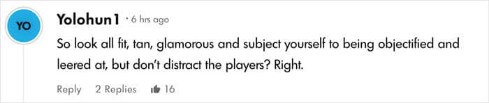 “It’s called, ‘You can’t fraternize with the players.’ And I think it makes sense because you don’t want the players distracted. If you’re dating a player on the team, they can’t be distracted that you’re on the sidelines.”