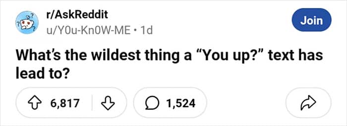 As you know, life imitates art, so when Reddit user Y0u-Kn0W-ME invited everyone on the platform to describe the wildest nights that started with a simple “You up?” text, people immediately began sharing stories that Hollywood could easily turn into a script! Below, you’ll find the most memorable ones we hand-picked from hundreds of submissions.