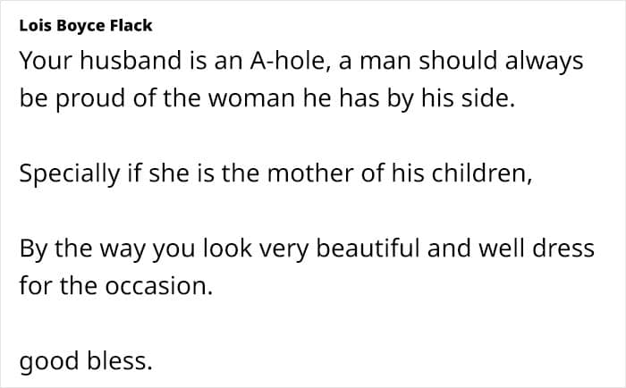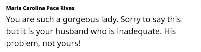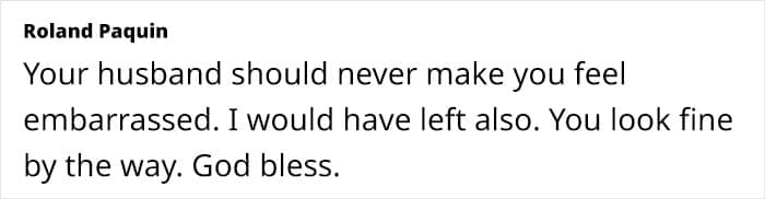 People in the comments gave the woman their warmest support, telling her that her husband was being incredibly rude and inappropriate here