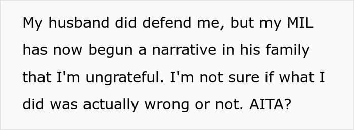 The author’s husband stood up for her, and the conflict gradually died down – but the OP admits that now the mother-in-law has probably spread a rumor among relatives that she is such a disrespectful person, and now the author is worried about the attitude towards her. So, the woman decided to enlist the support of netizens in this situation.