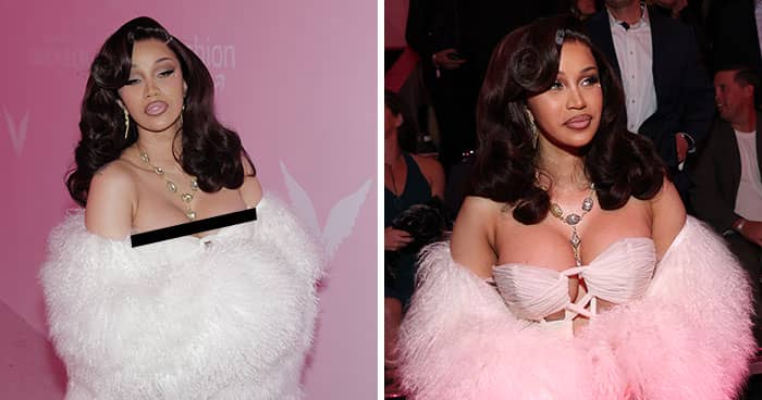 Despite the mishap, Cardi B remained composed, continuing to flaunt her outfit while posing for photos as if nothing had happened.
