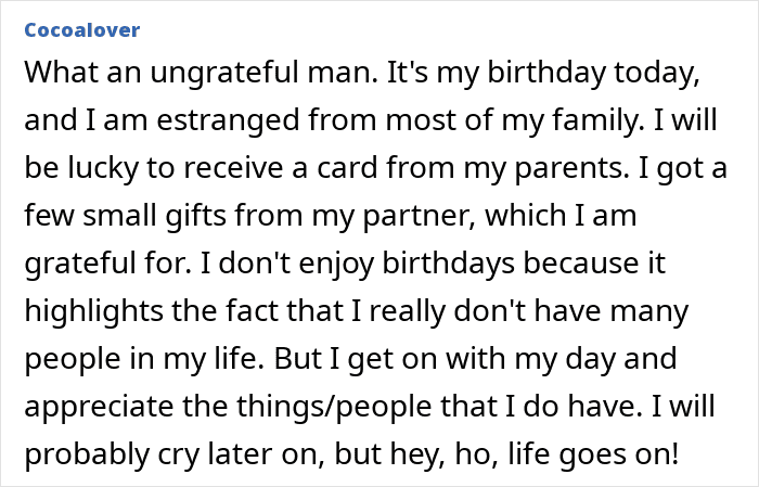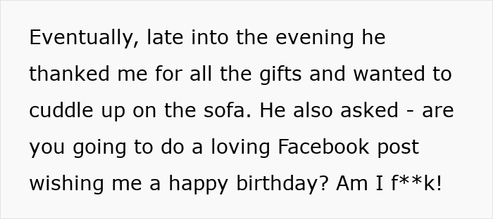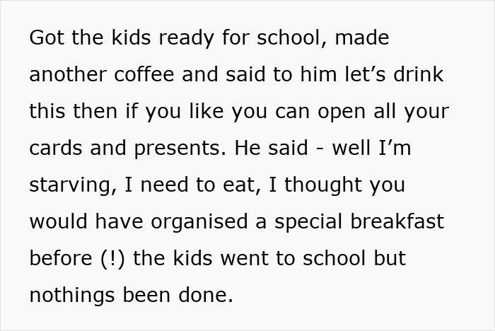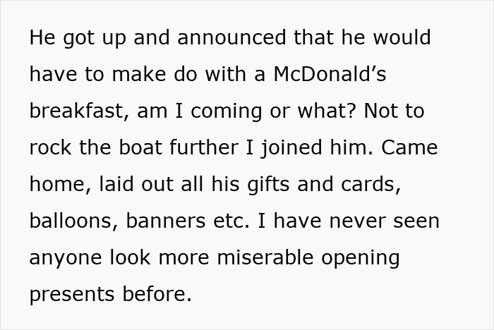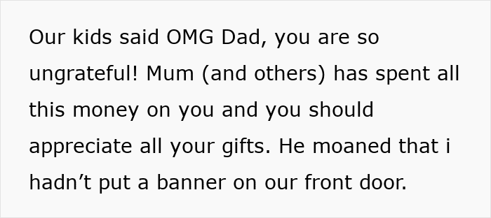 Speaking of which, a woman shared how her husband’s birthday went completely off the rails. Despite her planning a thoughtful celebration, he found something to complain about at every turn—whining about breakfast, dismissing his gifts, and even sulking over not getting a second party. As his moodiness dragged on, their kids called him out for being ungrateful. Keep reading to find out how this birthday meltdown played out!