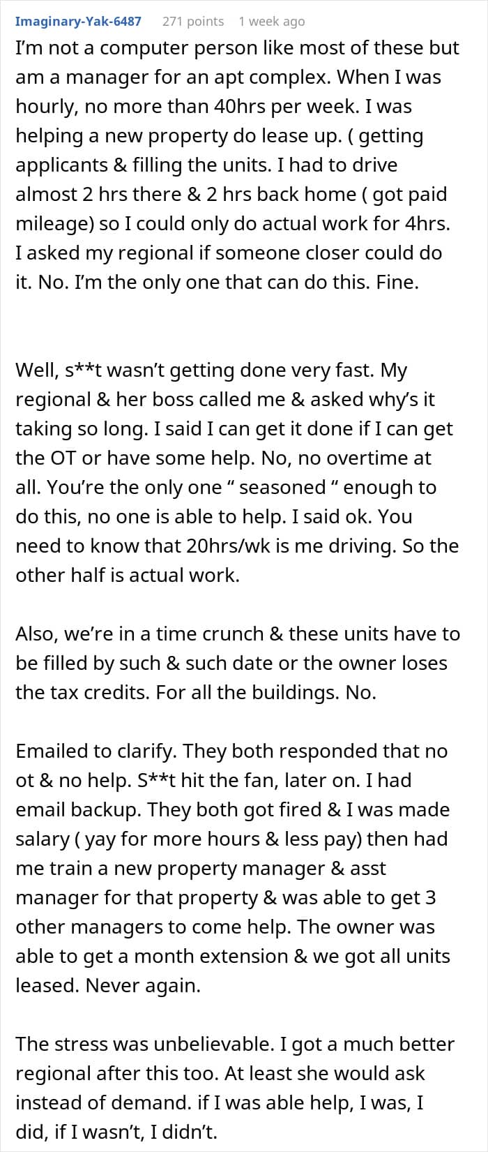 Being diligent, like the OP of the Reddit story, and putting in extra hours to stay on top of your job is something many can relate to. In fact, research by Inc and Go found that 95% of people feel external pressure to overwork. The top three sources of this pressure were work superiors (65%), friends and family (46%), and culture and media (43%). Interestingly, women were likelier to feel pressure from bosses and coworkers, while men felt it more from society and culture.