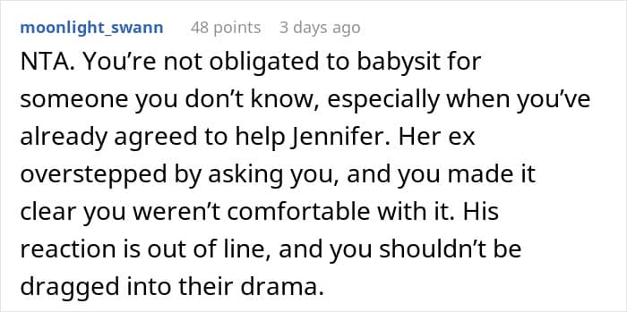 After about a hundred polite refusals, the guy finally left—but not before turning the drama dial up to eleven. Apparently, being told “no” wasn’t something this dude handled well. Instead of letting it go, he tracked the OP down on Instagram and started messaging him, trying to convince him to babysit.
