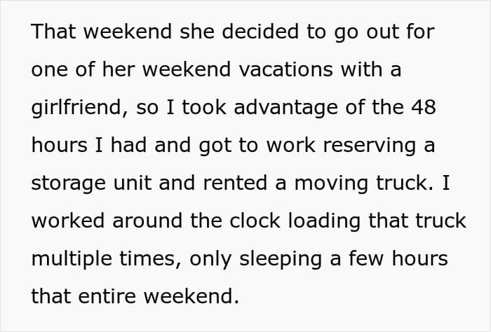 This person had to deliver an elaborate revenge plot on their ex-girlfriend who refused to leave their home after their relationship ended