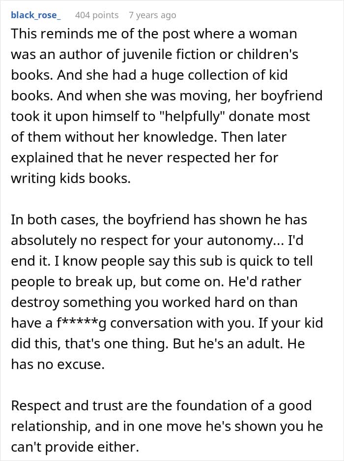 For the OP, it wasn’t just about losing notes, but about the lack of communication and respect. It was also the fact that he would go as far as to destroy something that was very important to her just because he needed attention. The OP was deeply upset, so she asked him to leave, but after that, he didn’t call or text.