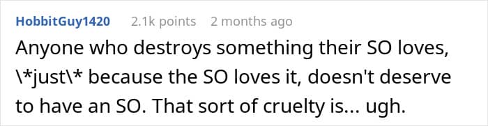 In this case, she described the boyfriend’s as “vindictive and evil,” and highlighted that if he could destroy something so valuable to her now, he just might do worse in the future—such as sabotaging her career. From this perspective, breaking up seems justified.