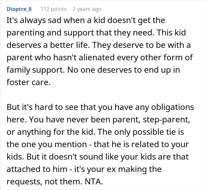 She refused without batting an eye, causing strain between her former spouse and the children they share