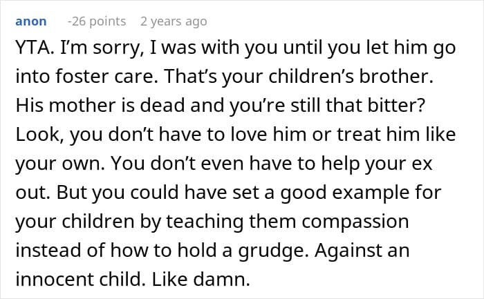 Holding onto the pain and resentment may only make the author feel worse. Helping her ex-husband’s son may be a good first step toward maintaining a civil relationship. However, keeping distance may be a better option if she chooses to maintain a life without him.
