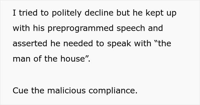 RELATED:A pushy salesman showed up on a woman’s doorstep, insisting on speaking to the “man of the house”