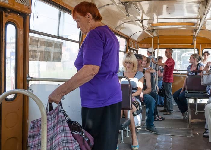Romania: Not giving the old people your seat in the bus/tram.