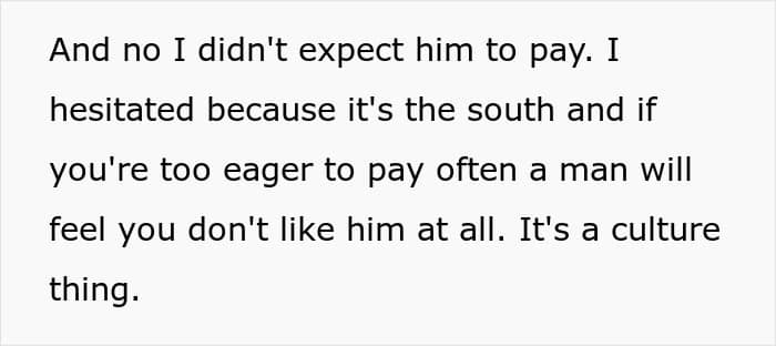 The woman was totally fine with it, but she wasn’t fine with what her date did next, as the man waited until the waitress came back to pick up the bills and then gave her both bills, simultaneously taking the woman’s credit card and saying he would be paying for it all. The woman thanked him for dinner and left, blocking the man as soon as she got into a vehicle. She explained that the reason she blocked him was the game he was playing with her expectations.