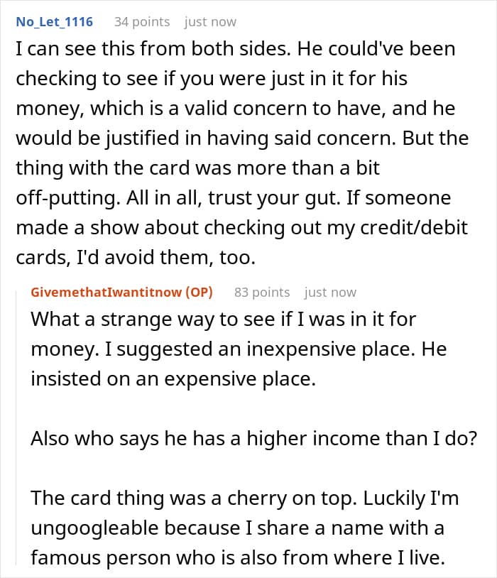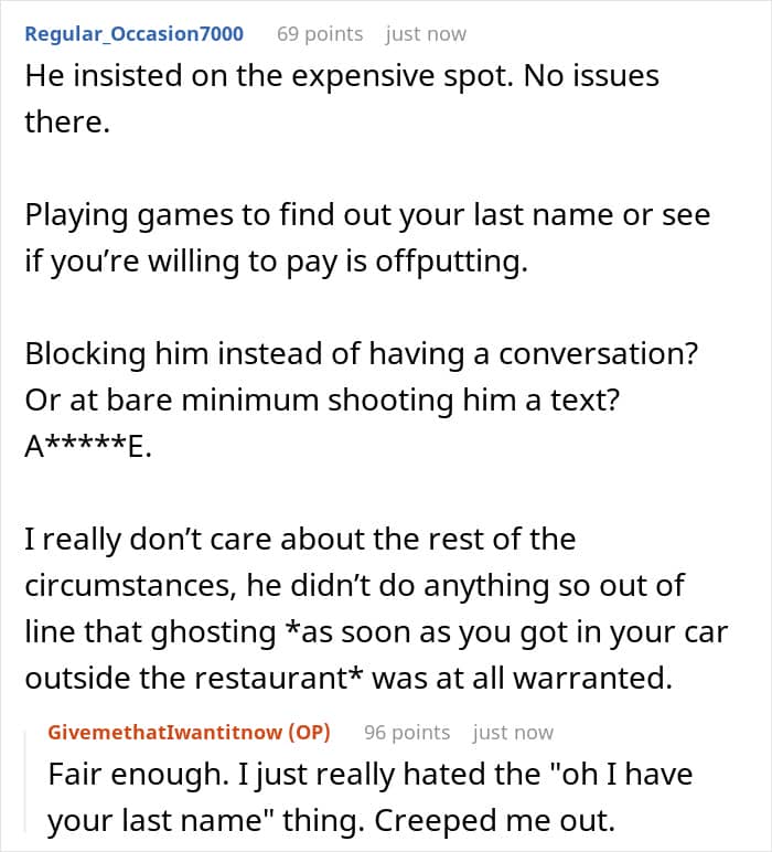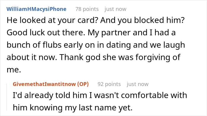 Similarly, Redditors had different takes on the situation, while most people agreed that the man’s behavior of playing games to find out her last name or if she would be willing to pay was off-putting, they also noted that it possibly wasn’t so out of line that she was warranted to block him, instead of having a conversation or at least writing a message. Others similarly suggested the woman could have been more forgiving.