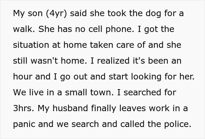 The poor woman frantically searched for 3 hours but couldn’t find her and even her husband left work to look for her. It was only after notifying the cops that a search and rescue dog found the teen after 6 hours, and to this day, she refuses to share where she had gone! Sounds quite alarming, doesn’t it?