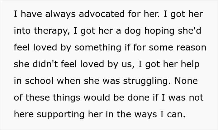 Unfortunately, that’s not all, for OP also revealed another recent thing that happened just after she recovered from an illness. The 13-year-old mentioned that she had a stomach ache for 2 days, so the poster decided to take her to the pediatric quick care. She even questioned the kid whether she was really sick, to which the girl replied that she was.