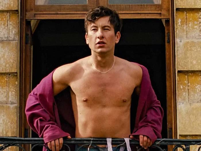 In Saltburn, Barry’s character, Oliver, lets it all hang out during a three-minute celebratory dance sequence around his classmate’s estate.