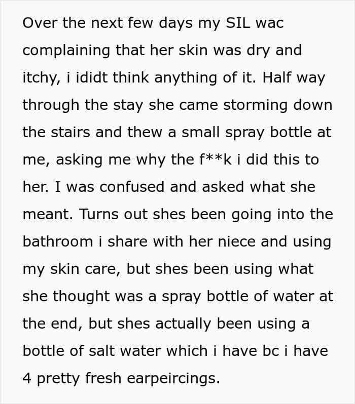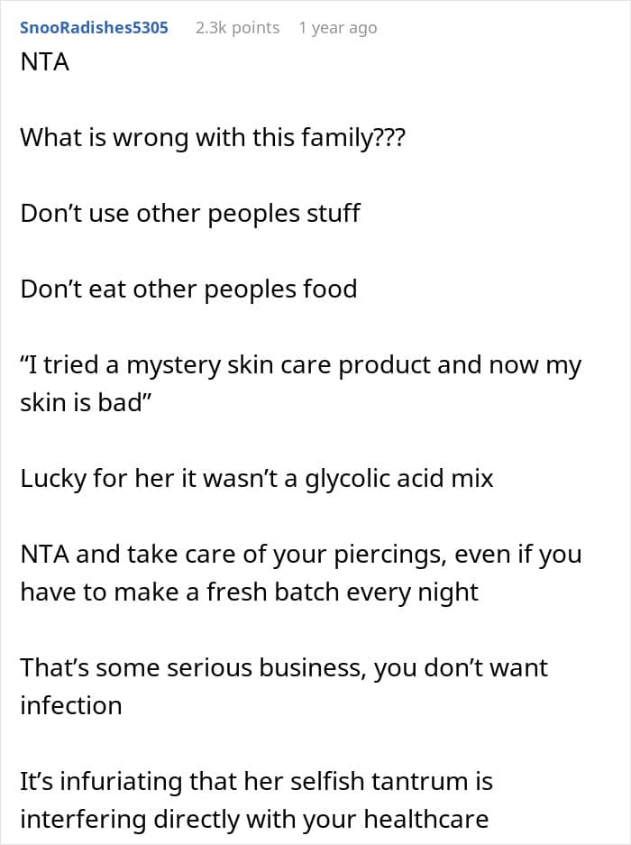 The author of today’s story experienced this from his sister-in-law, who began using his skincare products behind his back. To make matters worse, everyone blamed him when the entitled woman experienced an adverse reaction.