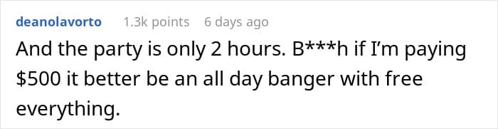 What drove the author mad was that the birthday girl decided to charge the guests $499 just to attend the party