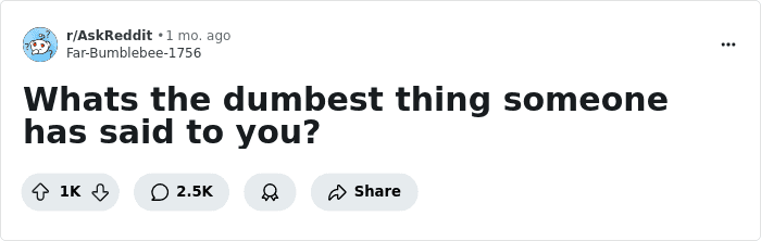 Internet user u/Far-Bumblebee-1756 sparked an interesting discussion on AskReddit after asking everyone to share the dumbest things that they’ve ever heard someone say to them. Hold on to your hats because the secondhand embarrassment is legendary. Scroll down for a good laugh and to lose a bit of your (remaining) faith in humanity.