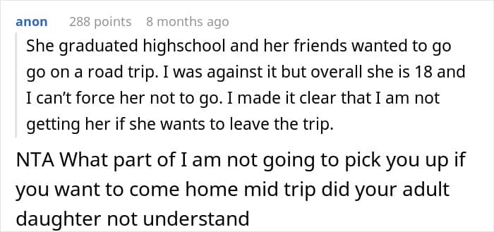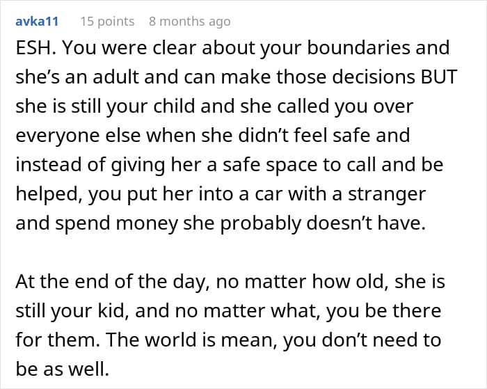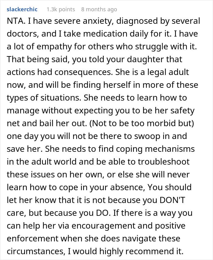 One parent stood firm when their 18-year-old daughter, who struggles with anxiety, called home asking to be picked up from a road trip after a disagreement with friends. Sticking to their boundaries, they told her she’d have to figure it out herself. Now, the debate is on: was this tough love, or too harsh? Keep reading to see what people think!