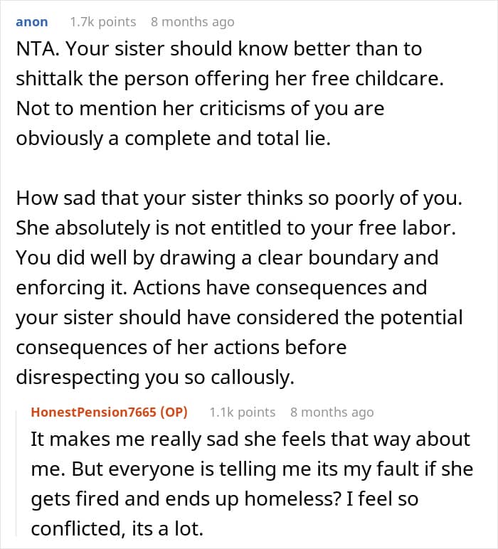 And that’s exactly what one Redditor felt when she found out her sister had been badmouthing her behind her back, despite all the free babysitting she was helping her out with. Isn’t family fun?