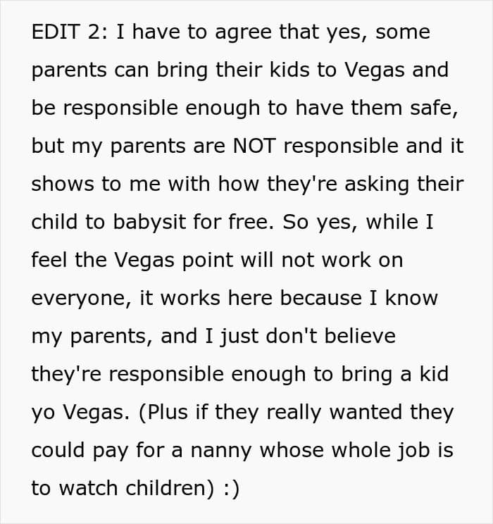 This teen refused to babysit for her parents while they visited Las Vegas and gave some interesting reasons