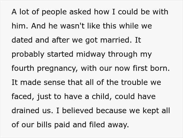 Balancing these expenses requires planning and budgeting to ensure that your family’s financial health remains stable. In this particular incident, the author wanted to provide a good future for her children, and she was willing to do anything for it. Do you agree with her decision to end things with her husband? Share your thoughts in the comments below.