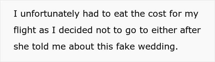 ‘I was planning my actual wedding and I think that caused some jealousy with her because we started to not be as close,” u/sly-pickle adds. “That’s why it wasn’t that hard for me to cut her out of my life after she told me about the fake wedding.”