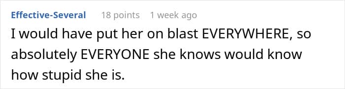 If their paths crossed today, the OP says she wouldn’t be interested to catch up. “I did so much for this girl over the course of our friendship without so much as a ‘Thank you’ from her, so, I have nothing to say to her. I helped her get a job at my company so she’d get insurance and benefits and gave her money and she was just ungrateful. Maybe this fake wedding is her karma.”