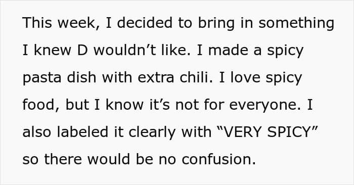 Unlike some commenters, Carnachan doesn’t think the OP crossed a line. “Making a dish that the offender wouldn’t enjoy hardly falls into revenge territory,” she says, adding that labeling the dish as spicy was actually generous.