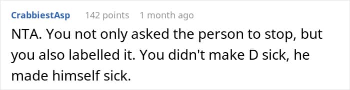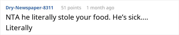 People didn’t think the author was at fault here: “He literally stole your food. He’s sick…”