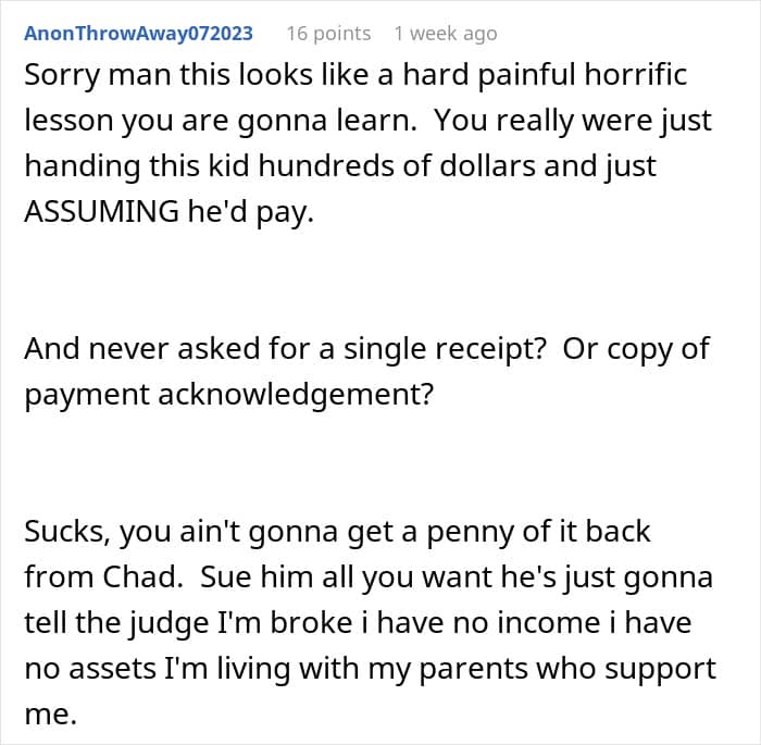 The clearest “sign” of this roommate’s entitlement are the various arguments he used to justify the fact that he is absolutely being a thief. “Growing up poor” and needing to “focus on himself” are already bad excuses when it comes to maybe avoiding someone you don’t like, but are absolutely unacceptable for blatant theft.