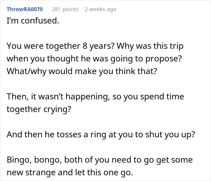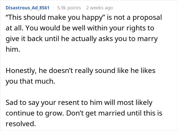 Reddit user u/Temporary_Wish_7261 recently went viral on r/relationship_advice and in the media after sharing how disappointed she was when her boyfriend proposed to her. This, according to her, was something she couldn’t get past. Read on for the full story and the advice the internet had to share.