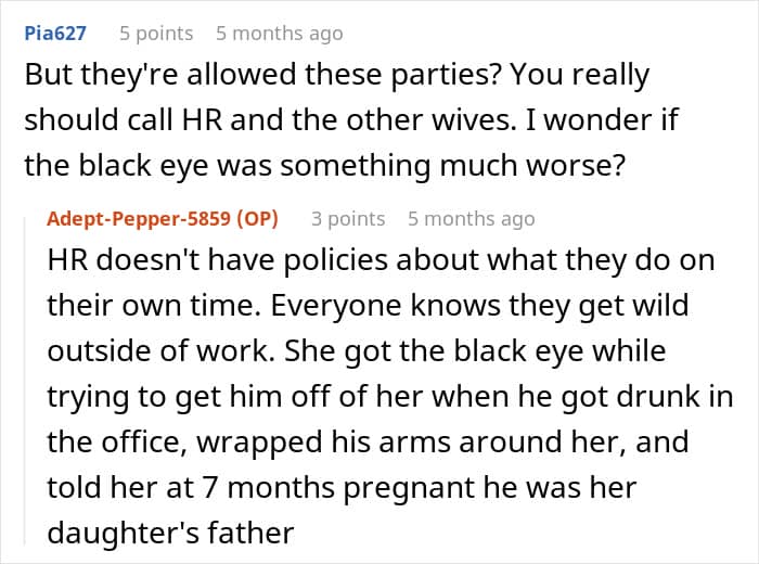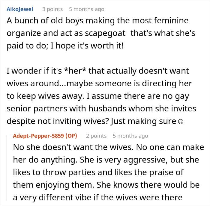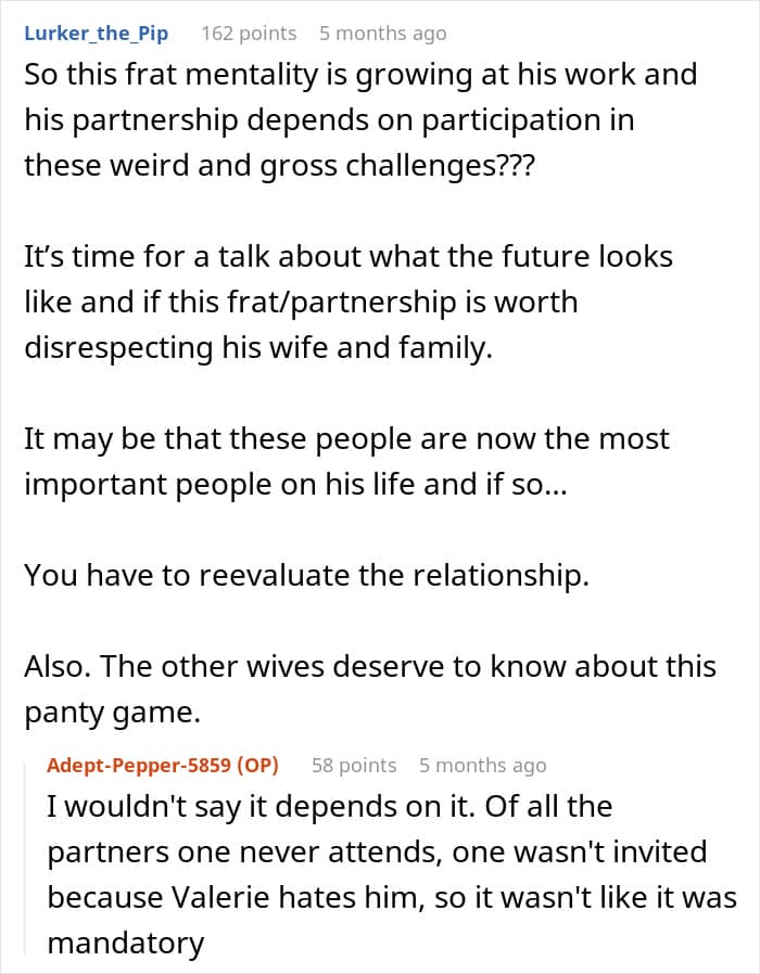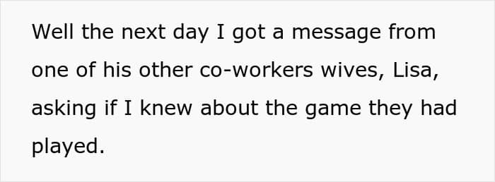 Even though the OP’s problem with her husband’s co-workers wasn’t a work spouse or the threat such a person might present, explaining how their relationship—and the games they play—is affecting her might not be a bad idea. Some netizens in the comments even suggested that the woman should reevaluate her relationship altogether.