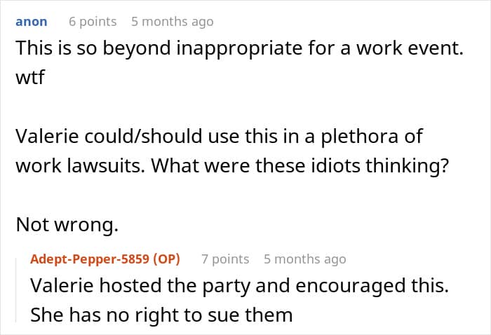 People in the comments sided with the woman; they didn’t think the co-workers’ games were appropriate