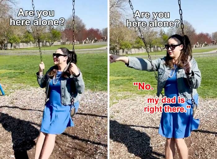 “For the most part, I had forgotten about this training until 2020. I was at a grocery store, and a clerk asked if I lived in the neighborhood,” the Mom Friend continued. “He was suggesting things to do in the neighborhood– I’m sure it was a completely innocent question, but all of a sudden my old training came rushing back and that scenario was in my first video.”