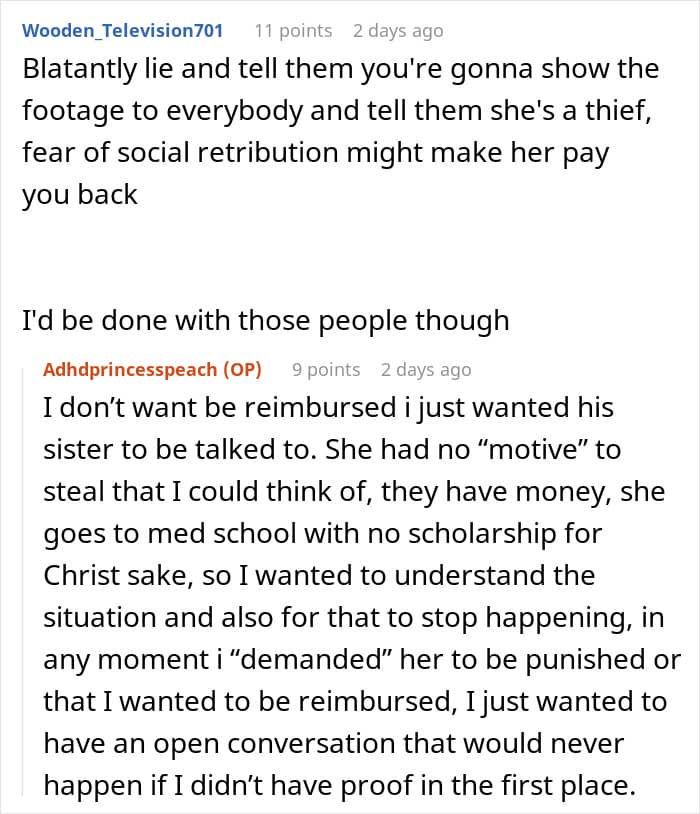 This woman seemed to be getting along fine with her boyfriend’s family until she noticed that his sister was taking things from her. To address this issue, she first decided to get some proof beforehand. After she succeeded, she confronted the sibling, but it definitely didn’t go as she expected.