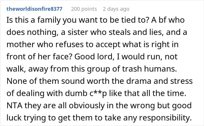 This woman seemed unfazed by this fact, until her boyfriend’s sister started taking things from her
