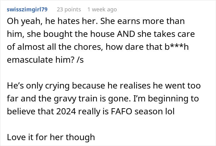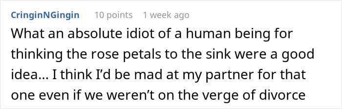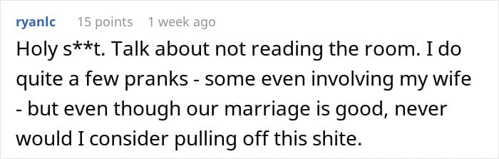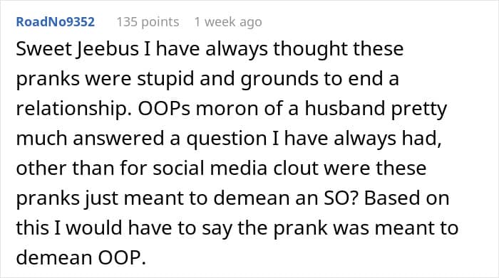 Dr. Baucom also provided some insight into why the husband may have gone the route of pulling this prank. “While I don’t have any way of knowing his thoughts, I am going to guess that the wife’s request triggered his insecurities on his capacity as a husband, and perhaps as a man,” the expert shared. “Which is why I think he resorted to a ‘prank’ that was really his way of shaming. He was trying to indirectly and unfairly make a point, in a way that was demeaning and dismissive, all at the same time. He demeaned his wife’s contributions in the household, while at the same time, dismissing her request for more connection and attention.”