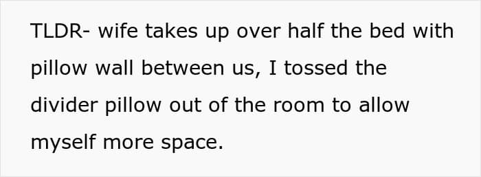 Today’s Original Poster (OP) was tired of not having enough room in the bed with his wife and was even more tired of her dismissing it whenever he brought it up. His approach to fixing it; however, soon became a problem when his wife refused to speak to him.