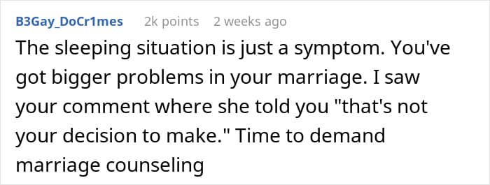 This ties into a broader relationship challenge: conflict. Good Therapy Counselling notes that while disagreements are natural and can strengthen a marriage when handled well, deeper issues often stem from selfishness on one or both sides. In this case, the OP felt cramped, and the wife brushed off his concerns, leading to frustration.