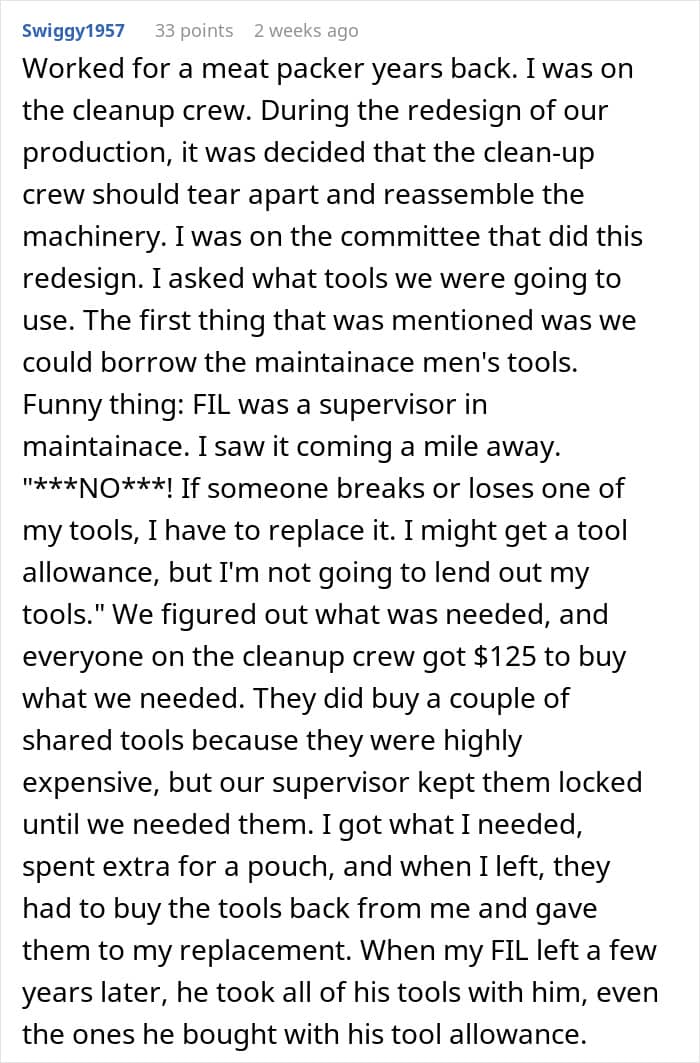 Your company will usually provide the tools you need, but this woman’s boss expected her to spend thousands on expensive equipment