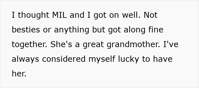 OP begins her story by telling the community that her husband has two brothers and a sister. She adds that she’s always had a good relationship with her mother-in-law.