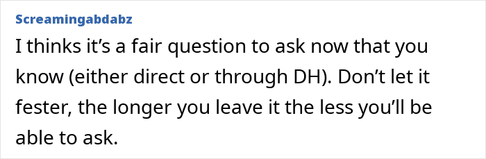 OP concludes her post by saying that her husband has offered to speak to his mom but that she’s not interested – she just wants to know from netizens whether or not she’s being unreasonable to feel hurt.