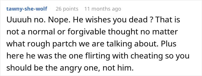 The sentiment from netizens was one of support and relief, with many applauding the OP for taking decisive action to protect herself and her child. They emphasized that leaving was the right choice and urged her to prioritize her safety. Others also pointed out that while venting in a journal is normal, fantasizing about a spouse’s death crosses a dangerous line.