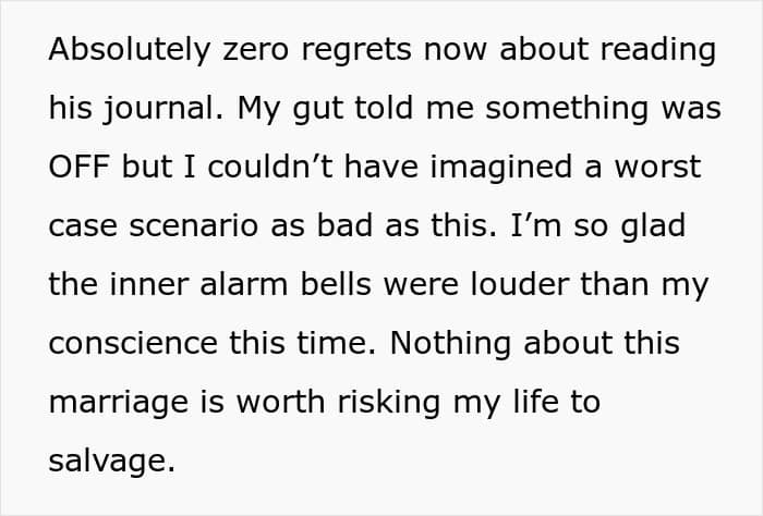 The OP began by explaining that her husband had kept a journal throughout their four years of marriage. She had always respected his privacy, never snooping or questioning his personal musings. However, after a heated argument that left her gut uneasy, she decided to dive in, and boy, what she found inside was nothing short of disturbing.