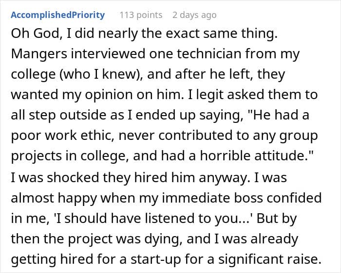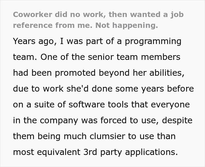 A guy recounted how his lazy ex-coworker said that he’d give her a job reference. Things didn’t turn out as she had hoped