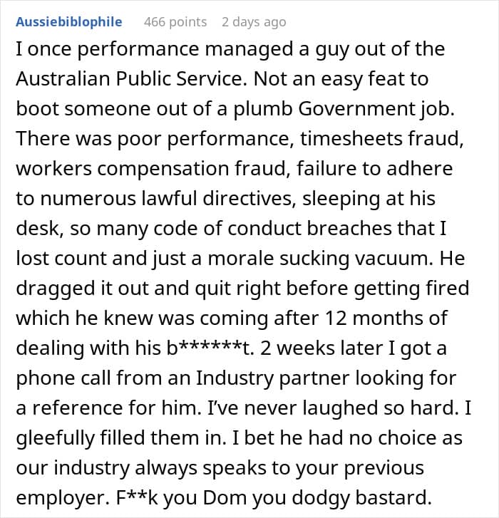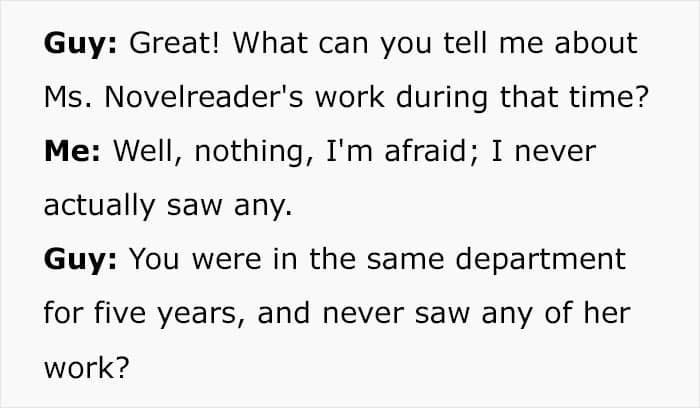 Case in point, redditor u/BuddhaMcDonald shared how his former colleague, a complete layabout who he called Ms. Novelreader, tried to get a job reference from him. He recounted the phone call he had with a human resources representative in a hilarious post on r/pettyrevenge.